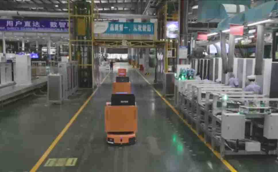 为车载冰箱物流配送打造的智能解决方案,,,包含产中物流通过潜伏举升AMR搬运至线边,,,产后成品物流智能仓储,,流程包含产中物流智能齐套入库,,线边安灯叫料AMR智能配送至线边,,,成品入库、、、、出库,,,,通过无人堆高车机器人,,,,智能仓储管理替代人工作业管理,,,实现更高存储、、、更高效率、、、、更具柔性化的解决方案。。。